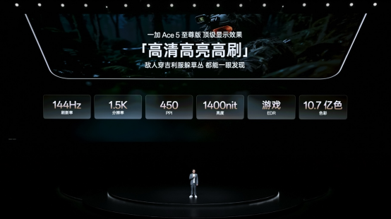 一加Ace 5 至尊版追求屏幕极限,搭载Ace系列有史以来最电竞、最强大的144Hz电竞高刷护眼屏,为玩家带来最极致的视觉体验。这块屏幕拥有行业最高 144Hz 的屏幕刷新率,相比 120Hz 的屏幕,每秒可以多显示 24 帧,带来行业最丝滑流畅的显示效果。