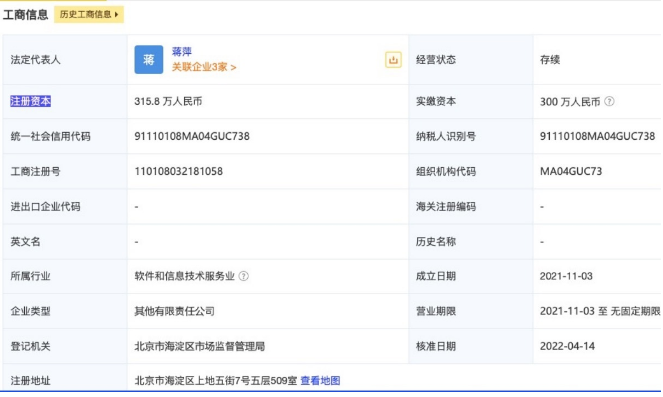 企业注册资本 315.8 万人民币,并已于2021年完成了天使轮。